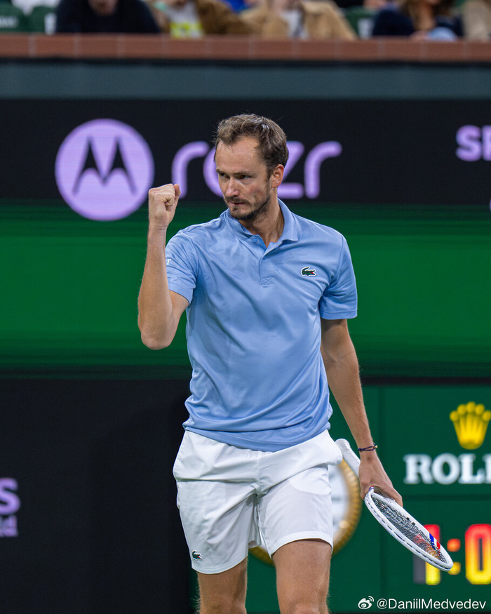 梅德维德夫个人社交平台图北京时间3月15日清早,ATP1000印第安维尔斯站半决赛,爆出了本站赛事甚至是本赛季开始以来的最大冷门——“梅总”梅德维德夫直落两盘,以6-3、7-6(3)硬生生淘汰了当今男网“世界第一”卡洛斯·阿尔卡拉斯,无情终结了对方的赛季16连胜、室外硬地34连胜。